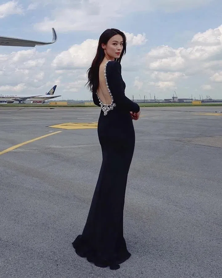 本地最大颁奖典礼之一——红星大奖红毯停机坪上,黄思恬身穿台湾品牌Nicole+Felicia 2019秋冬系列晚礼服闪耀登场。无袖设计以及超低胸设计衬托着黄思恬的高挑曲线,性感中不失高雅大方,完美地驾驭着身上的性感造型。穿搭出众的她,还是《女友》今年心中最爱的本地时尚女星哦!