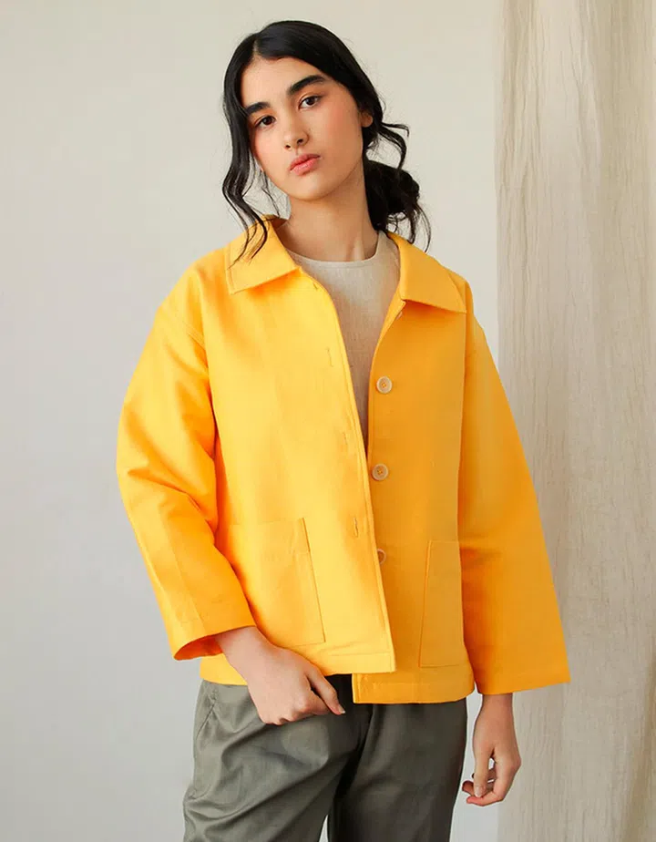 如果不喜欢一身黄,那么可以挑像这样的外套,一样能玩转流行色!
