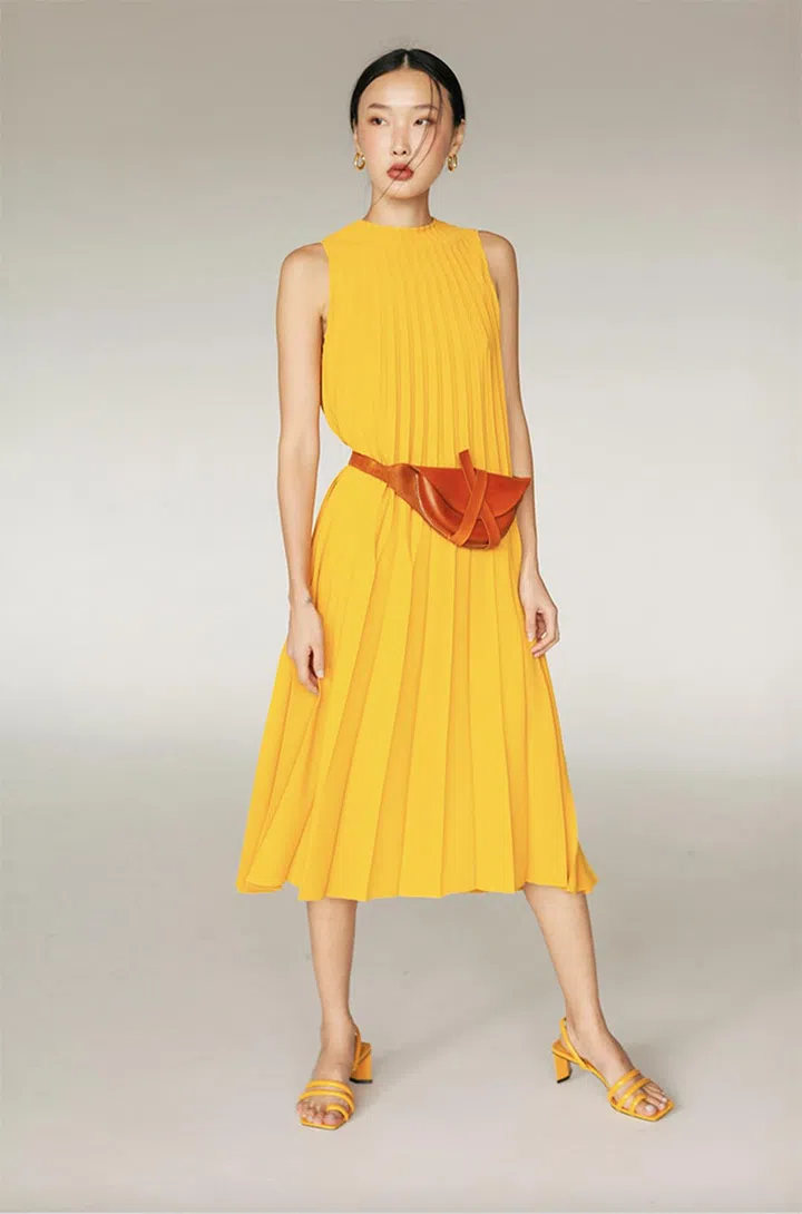 亮丽黄接近于明黄,让人想到明媚的阳光,所以显得活跃又温暖。例如这款连衣裙,是不是穿上就显得活力十足?