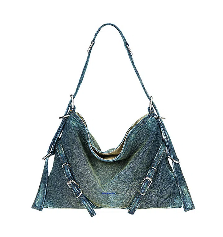 Givenchy新推出的Voyou系列手袋,揉合了法式(品牌创办人Hubert de Givenchy从容的巴黎优雅风格)与美式(加州的酷劲品味)的时尚风情。拥有大、中、迷你型三个尺寸,各尺寸皆推出粒面皮款(黑、象牙白、浅粉红及薄荷绿四皮色),中型款另有金属银皮革及丹宁布款供选择,迷你型则推出一款镶以铅质玻璃的bling-bling版。