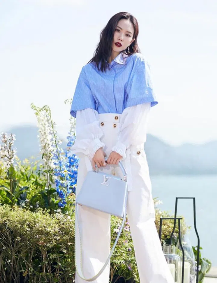白衬衫的优点在于其穿搭可能性千百种,可任人随意进行层次搭配。前miss A成员王霏霏这袭华丽白衬衫造型,将荷花袖白衬衫穿在蓝色条纹衬衫之下,配上帅气的全白高腰西装裤,高雅又时髦。想尝试王霏霏的衬衫层次穿搭,外穿衬衫记得挑选较宽松或前摆短的,微微露出白衬衫的造型细节。