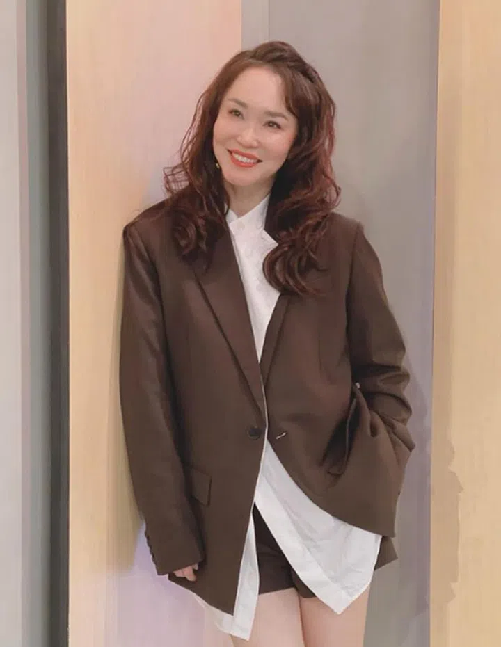 8频道烘焙节目 #糖朝冠冕 半决赛,范文芳以一身Valentino宽松白衬衫搭配oversized巧克力色西装外套登场。原来,这款oversized西装造型出自于品牌2021春夏男装!阿姐选择以同色系的西装短裤做搭配,展现纤细长腿之余,也巧妙地修饰了男装强硬的线条廓形。一双白色粗跟及踝靴,为整体造型增添几许女人味。若你想尝试同类oversized白衬衫+西装外套造型,但个子较娇小,可以在腰际线系上腰带,凸显腰身。
