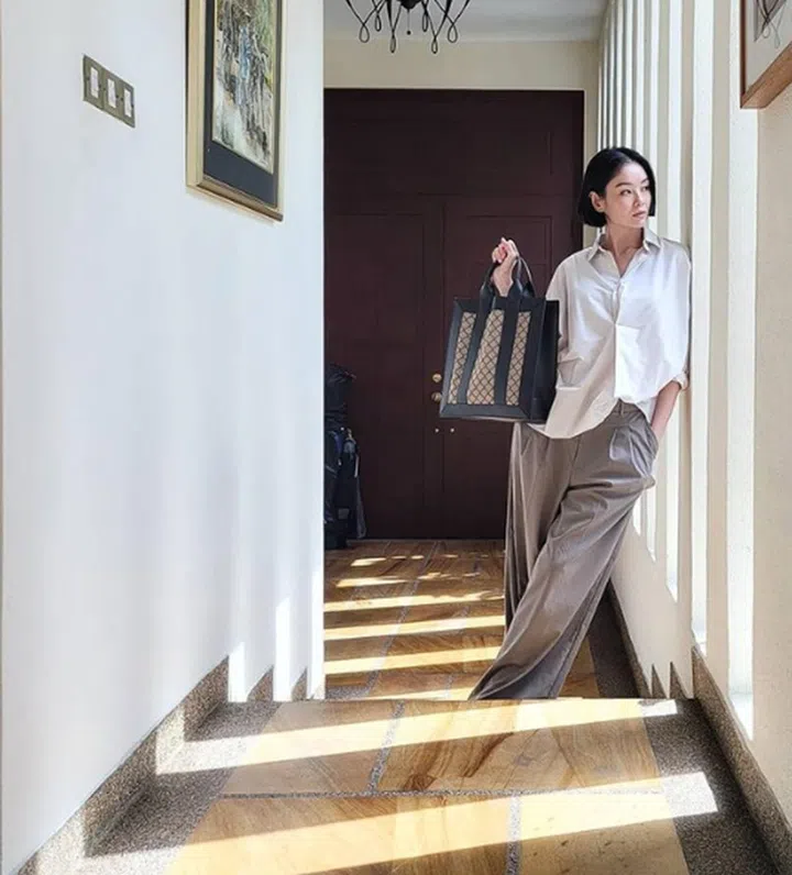 本地气质女星沈琳宸完美诠释休闲风的白衬衫穿搭。沈琳宸以灰色阔脚裤来搭配白衬衫,衬衫“塞一半”不经意露出另一边,轻松打造这身名模off-duty look。挑选一条喜欢的裤子,将白衬衫“塞一半”,卷起袖子,打造属于自己的周末休闲风格。若需出席正式场合,则可选穿一件高腰西装裤。