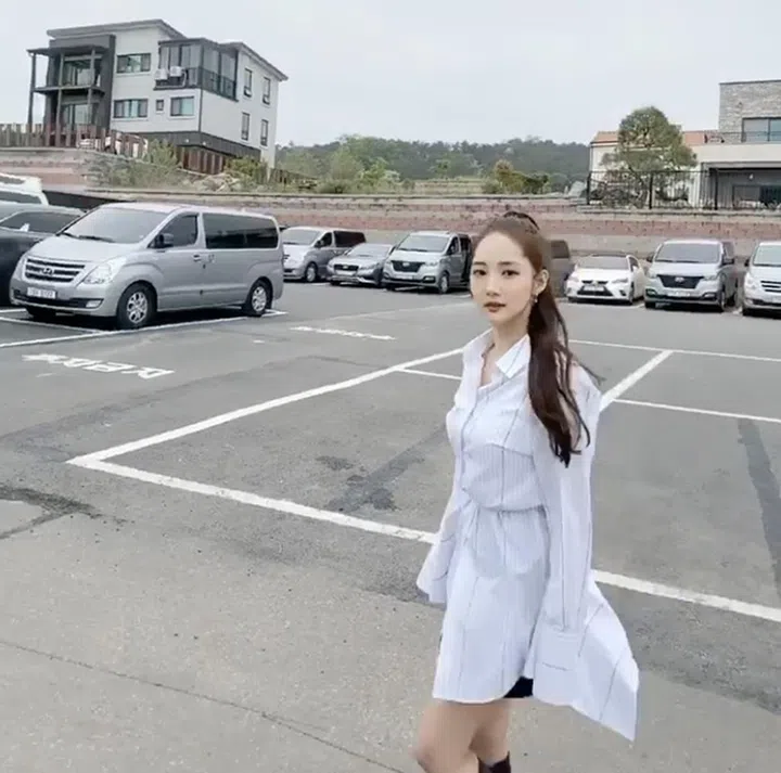 韩星朴敏英私下的造型穿搭一样给人时尚小女人的感觉。一件超大号boyfriend shirt系上腰带,配黑短裤和及膝皮靴,轻松营造出飘逸韩剧女神look。这身“borrowed from the boys”造型,重点在于够宽松的长衬衫+能够完美修饰腰身的腰带。本地热带气候,建议改穿及踝靴,符合气候又不失造型感。