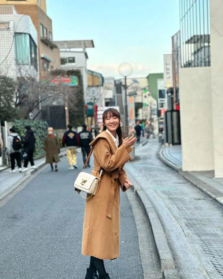 穿上九分长褐色外套的陈欣淇,可是很有日韩剧女主的氛围感~