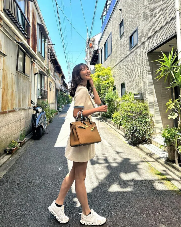 陈欣淇也是养“马”一族~ 米色的棉质连衣裙+深褐色的Hermes Birkin包包 —— 走在日本京都街头的陈欣淇,也是特别温柔有范。