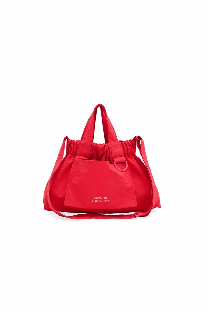 Beyond The Vines的人气Dumpling Bag以轻量尼龙打造,软塌塌的包型装起橘子来反而更随性;抽绳开口一拉就好,进出亲戚家不用手忙脚乱。Cherry红色为新年限定配色,红得正,却不显刻意,搭配日常T恤或轻松连身裙都很顺眼。