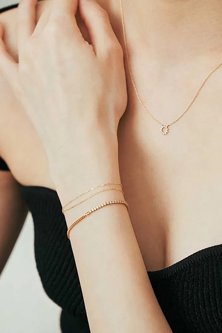 简约细手链——它的流行度在于其多功能性和优雅精美的设计。这类手链非常适合叠戴,可以轻松搭配其他风格的首饰,创造个性化的造型。同时,它们也足够低调,适合日常佩戴,提供一种精致而不夸张的装饰。