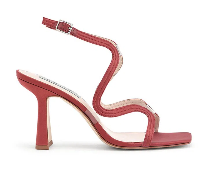 这双高跟鞋的设计线条犹如“火焰”,独特的结构设计让绑带悬挂在脚上,抢眼吸睛。是嘛,新年就要这般的红红火火,大吉大利。