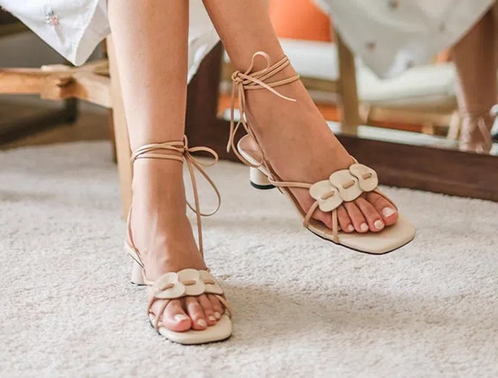 以高雅的兰花为灵感,这双低跟凉鞋将兰花的花瓣以仿造皮革呈现并串在绑带上,让你新年从头到脚散发如花一般的知性气质。