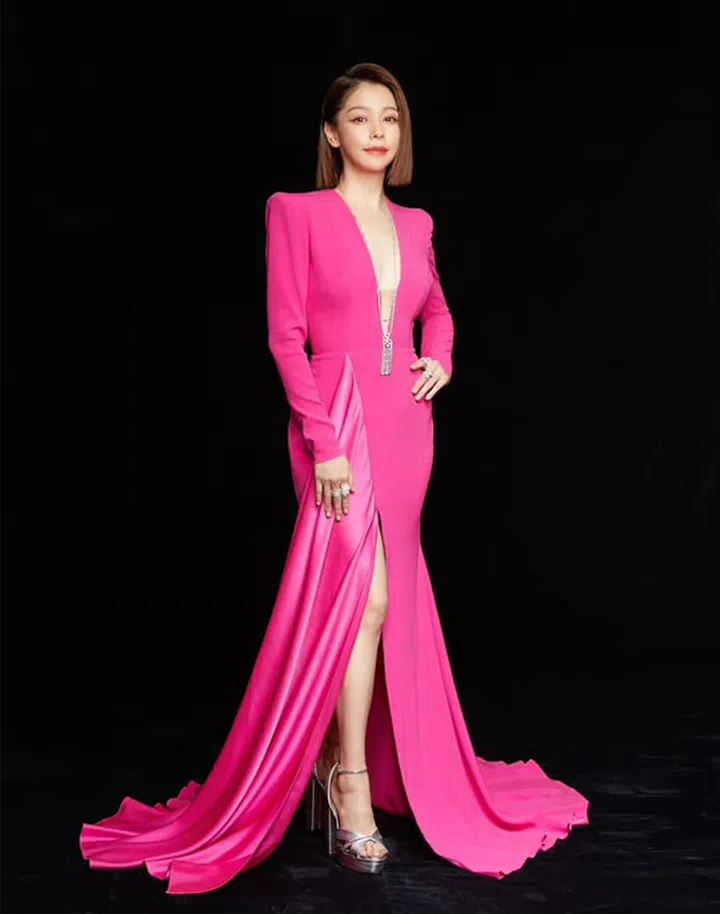 红毯常胜军徐若瑄近年来偏爱澳洲品牌Alex Perry。她在《金马》颁奖典礼披上品牌桃红色低胸开衩礼服,以上下“V”穿出高级性感。