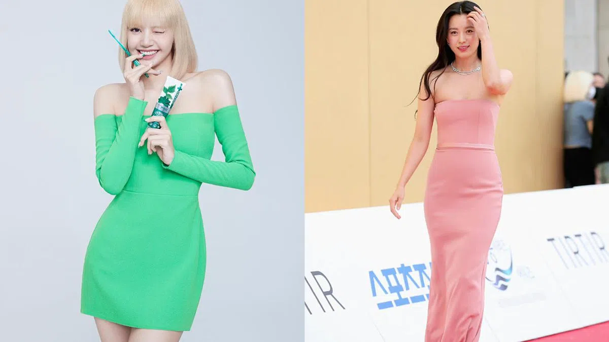 Lisa代言牙膏品牌Dentiste,拍摄时选穿Alex Perry的绿色露肩连衣裙——该连衣裙的实际色彩比上图效果更深,正是当下超夯的绿调。