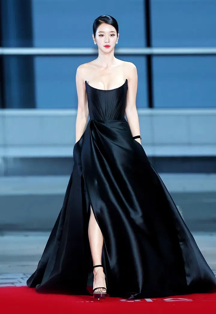 除了金憓秀,韩国女演员孔升妍也同样穿上了Alex Perry 的设计出席青龙电影奖。她以高雅的甜美气质撑起“U“型低胸晚礼服设计,靓丽踏上红毯。