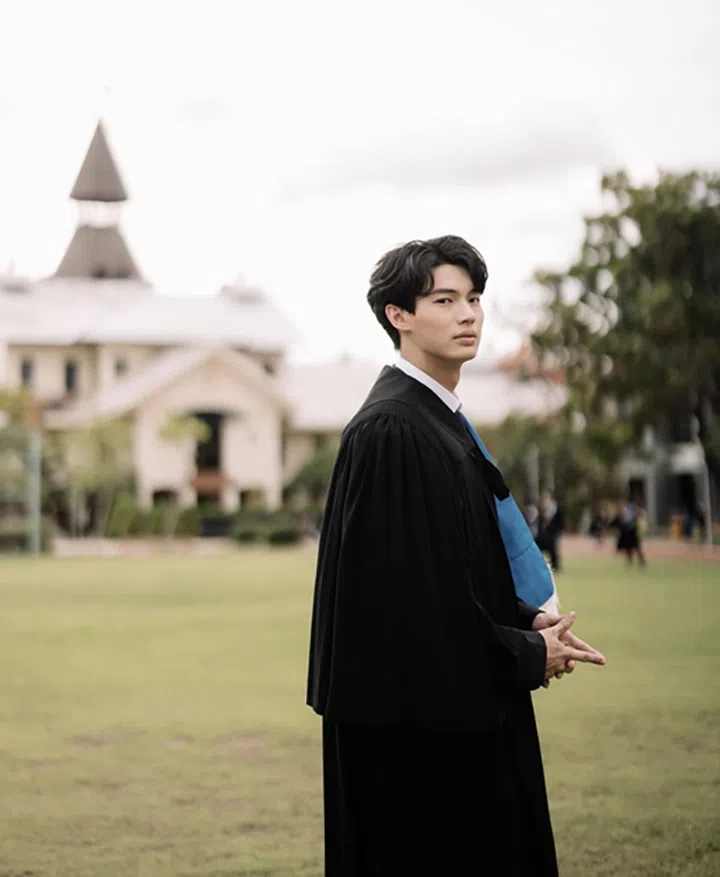 Win因为长相带点可爱感,被粉丝昵称为“小兔子”,拥有中泰混血的他是人生胜利组,家庭背景富裕,是个富二代+高材生。高二那年,他曾到美国当交换生,因此能说一口流利英语。小时候梦想当建筑学家,但父亲希望他接管家族生意,因此转而考上泰国国立法政大学,在20岁那年就取得经济学学士学位。