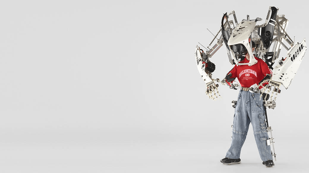 另外Balenciaga最新推出的广告也很有趣,其中,下方这个骨骼套装还是由日本艺术家Hiroto Ikeuchi和机械人制造商Skeletonics为品牌特别打造的。