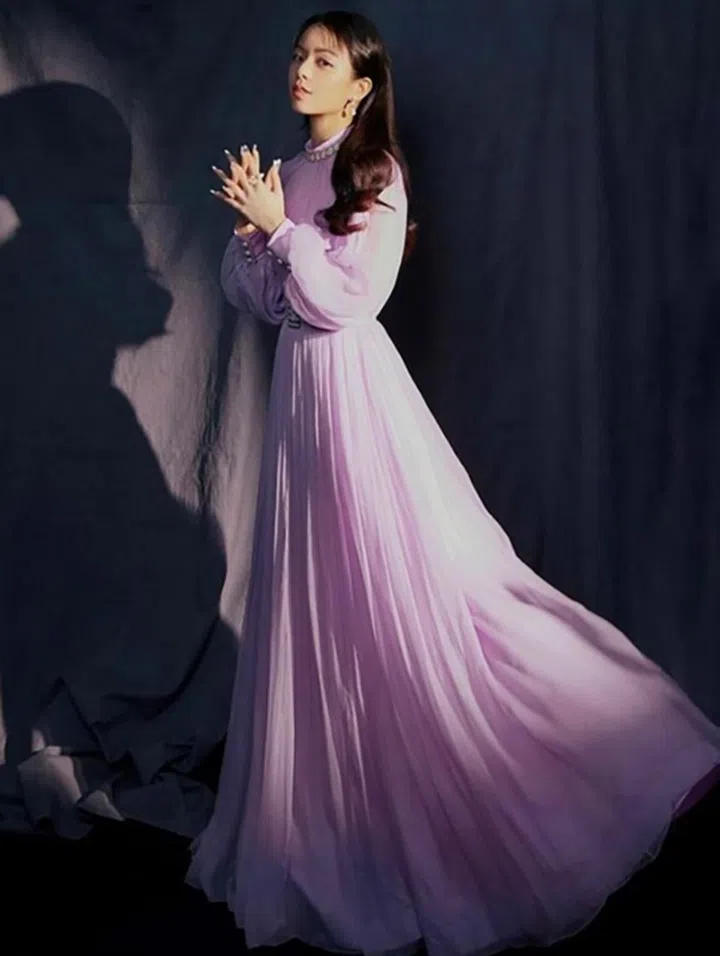 台湾女演员宋芸桦出席去年在台湾举办的《金马影展》,穿上了一席飘逸感十足的淡紫色雪纺礼服。宋芸桦自带的仙女气息在Andrew Gn设计的加持下,显得更加精致动人。