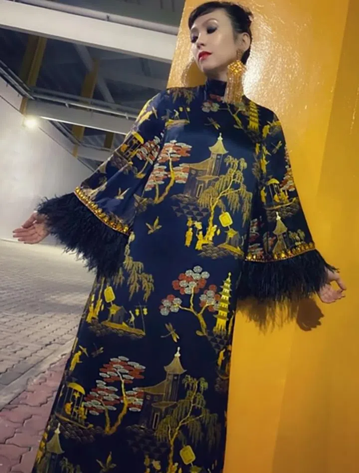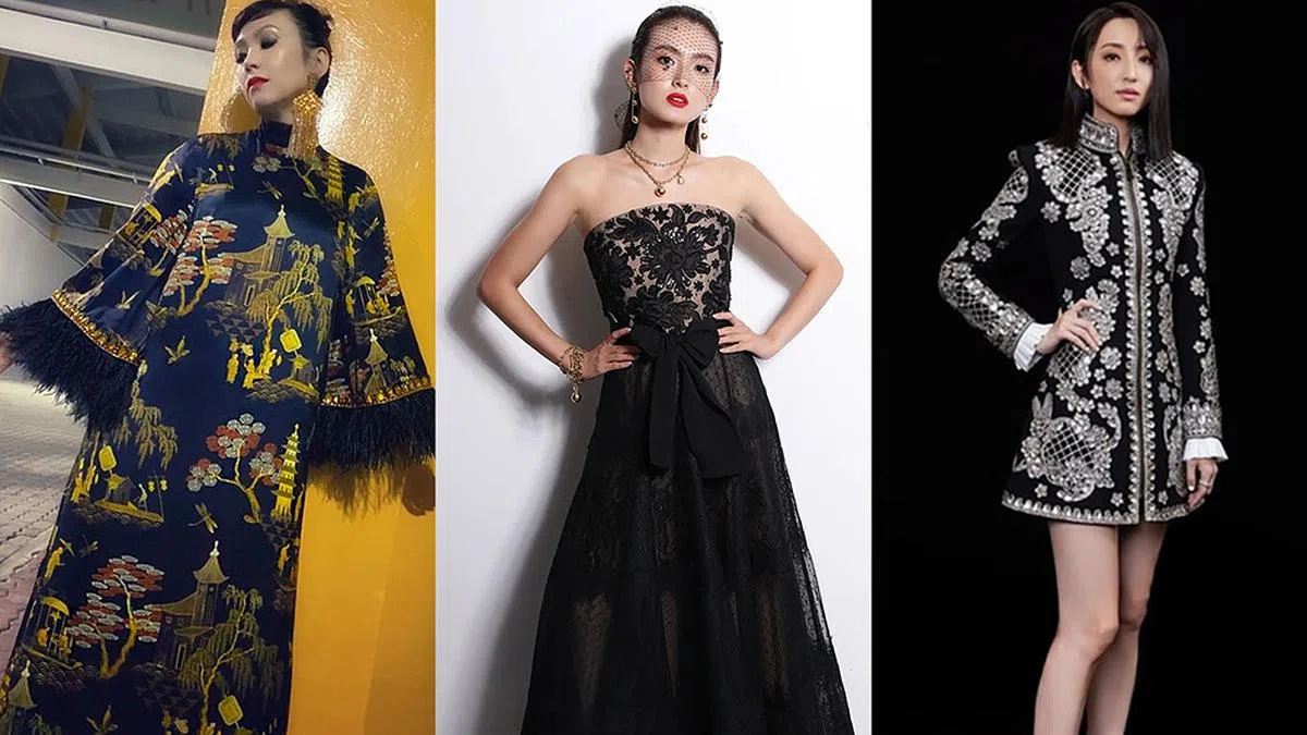 同样的,陈洁仪在《旺虎泰哥迎春乐》晚会也穿上Andrew Gn的设计。羽毛袖口印花连身裙融入了极致奢华的中华元素,再以西方干练的视角与技巧做处理,这正是设计师Andrew Gn的标志。