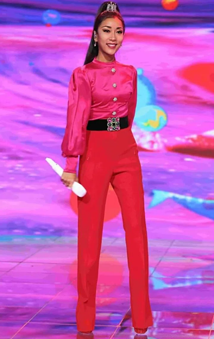 在领取《10大最受欢迎女艺人奖》时,她穿上了同样来自Andrew Gn的艳丽红色羽绒连身裙,惊艳全场。