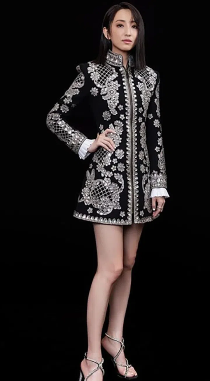 Andrew Gn对廓形的美感也很有讲究。柯佳嬿出席《第56届金钟奖》穿的水晶缀饰大衣连身裙线条利落,剪裁合身,让柯佳嬿造型上酷帅中流露出影后的女皇风范。