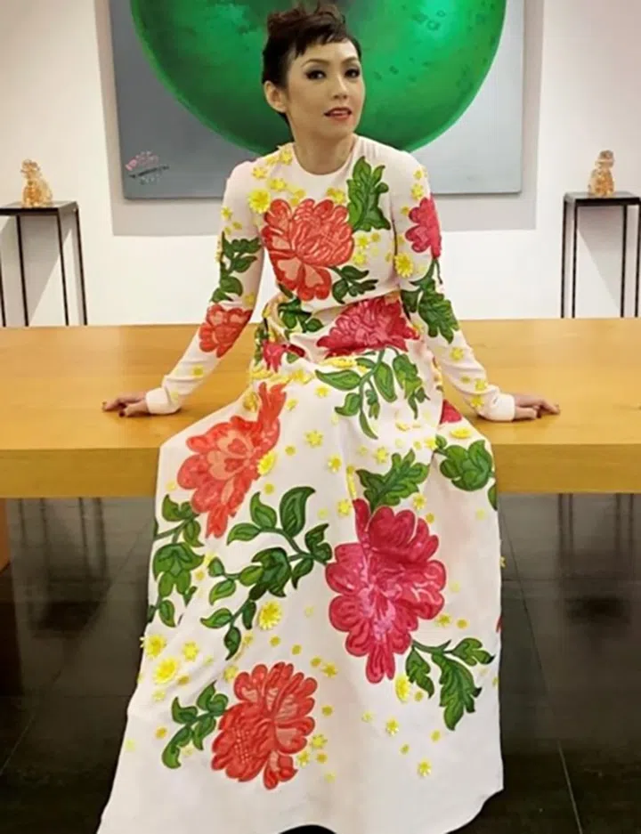 Andrew Gn的设计可是阿姐郑惠玉认证的!今年《旺虎泰哥迎春乐》晚会上,阿姐郑惠玉身穿Andrew Gn的设计,蝴蝶亮片刺绣在红色飘逸的连身裙上栩栩如生,应景了春天的到来。