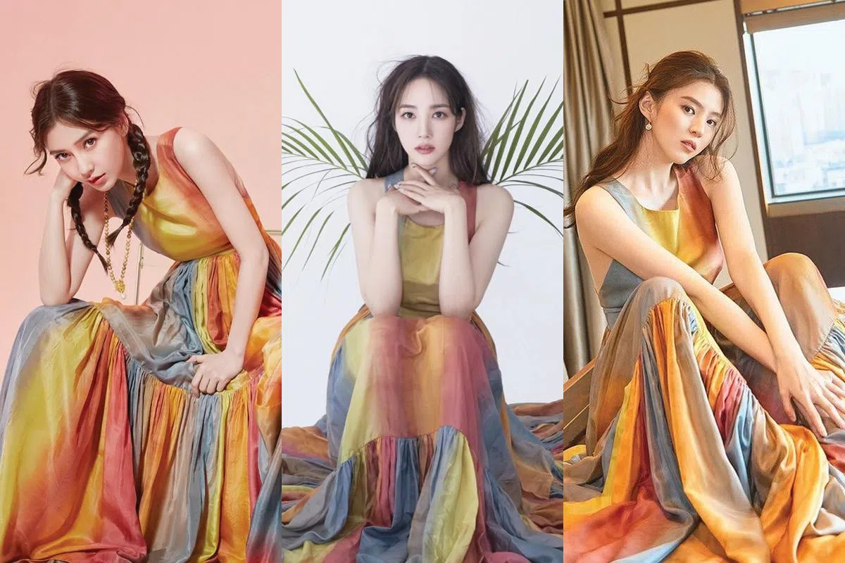 张钧甯也穿了Dior彩虹扎染连衣裙,与容祖儿一样站着“丢弄”裙摆拍摄杂志封面。少了多余的配饰(如项链及腰带)再搭配了利落短发,反而令整个人柔美又清新。