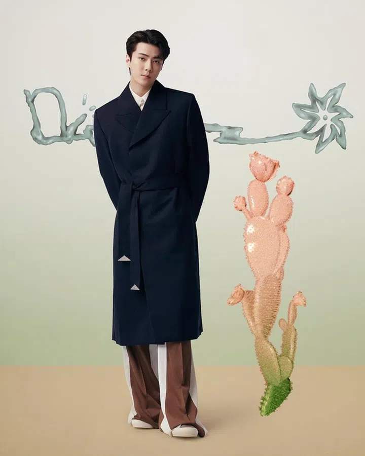吴世勋以一袭Dior深蓝大衣及色块拼接西裤亮相,演绎沉稳的绅士魅力。