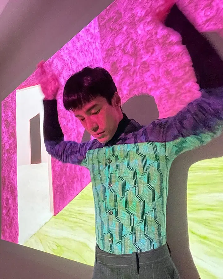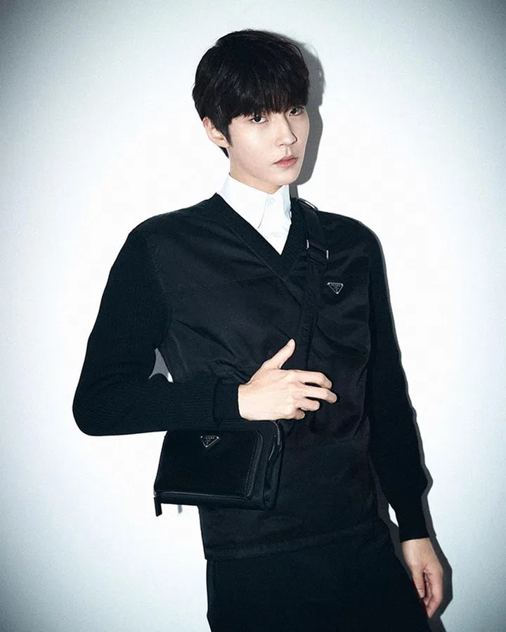 王冠逸也“赶”了两场男装秀。看完Fendi秀的隔日,即换上Prada 2021秋冬系列新装,继续宅家看品牌2022春夏男装秀。