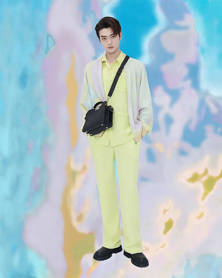 许凯同样抢先穿上Fendi直播秀上的新装,一袭柔和的鹅蛋黄衬衫及膝裤外罩渲染的开襟衫,散发犹如七彩冰淇淋的时尚。