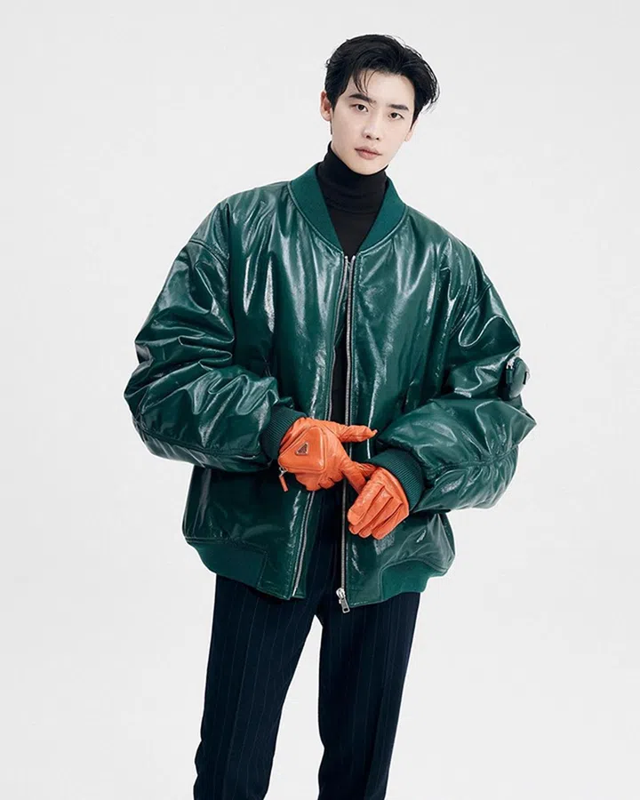 久未亮相的李钟硕,以一袭Prada墨绿色皮革外套+橘色皮革手套,造型亮眼。果然,这位oppa还是非常有型!