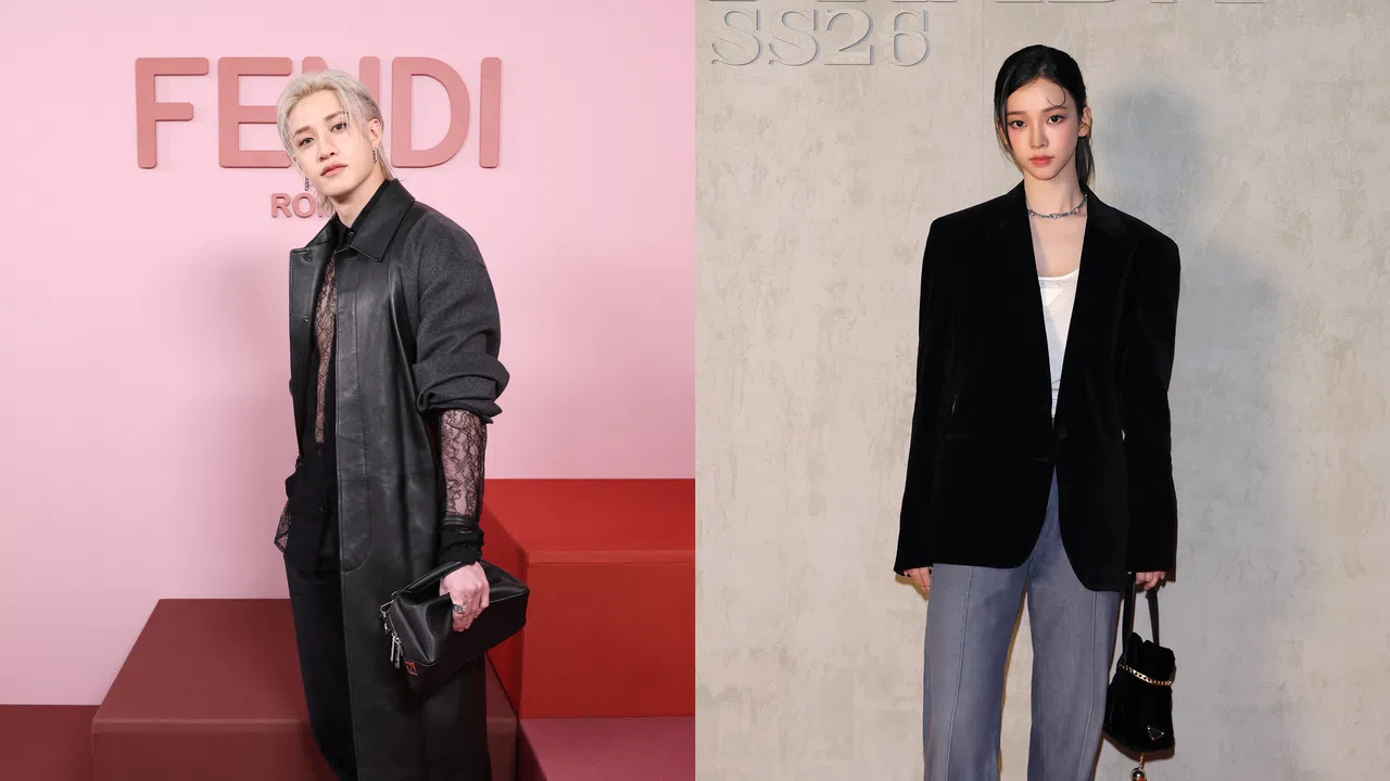 韩团Stray Kids成员方灿(Bang Chan)及韩团aespa成员Karina(图:Fendi及Prada)