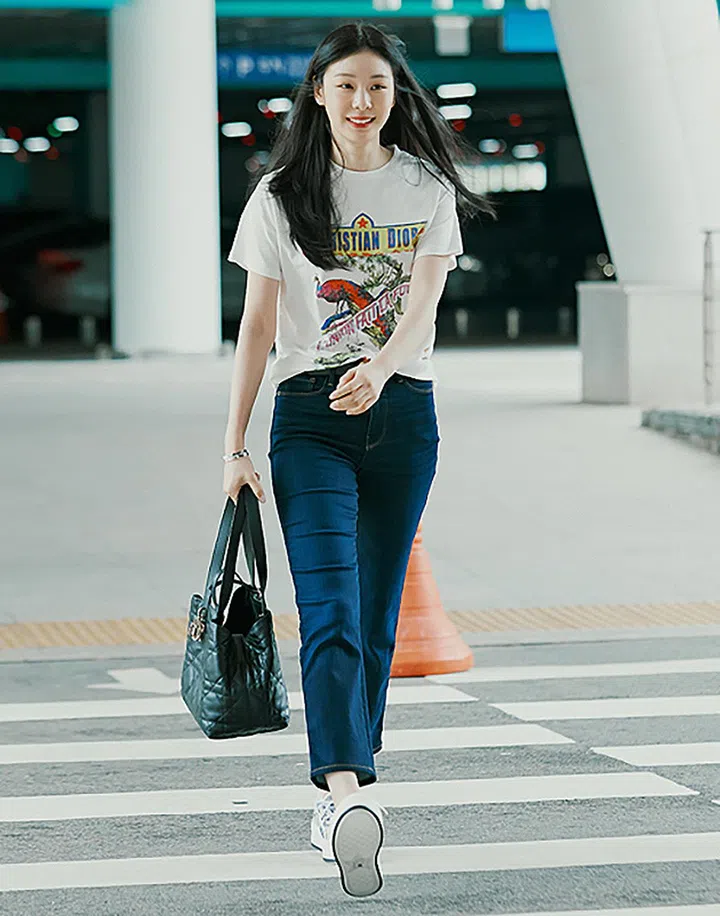 韩国滑冰女神Yuna Kim作为Dior的品牌大使(House Ambassador),IG造型中不乏各款Dior新包。上图这张机场造型,她也选择携带Dior Toujours搭飞机,可见手袋的大容量也让这款包成为旅途的完美时尚伴侣。