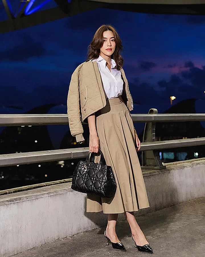 泰国女星Kimberley Anne Woltemas早前出发巴黎高定时装周出席品牌2023秋冬高定大秀,以白衬衣+米色调造型亮相,手拎黑色款Dior Toujours,风格高雅而端庄。