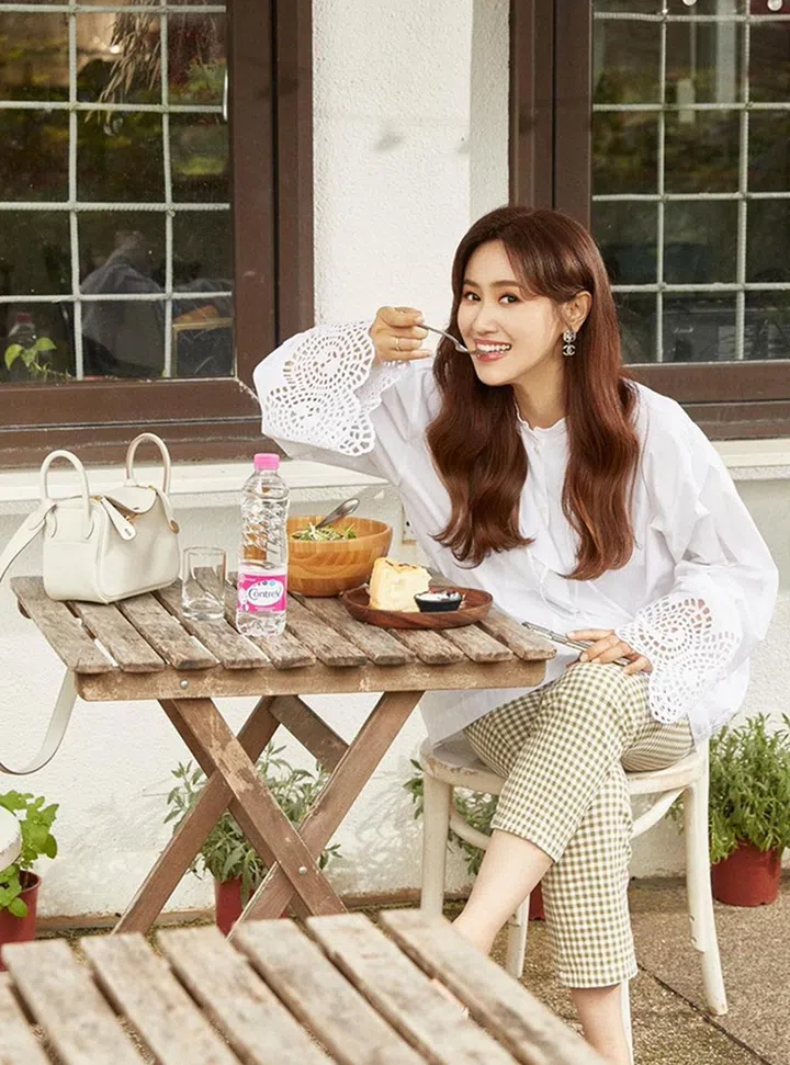 朴敏英穿上洁净帅气的Prada短衬衫,解开上方钮扣,展现不落俗套的气质性感。