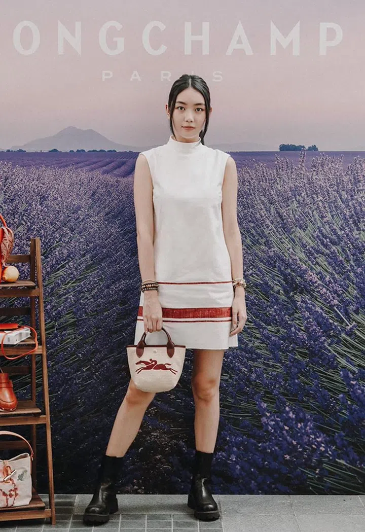 洪丽婷出席Longchamp活动,穿上的正是品牌的无袖连身裙。典雅的设计穿插着鲜明的橘色线条细节,层次立体分明,简单地穿上黑靴便可以很时尚。