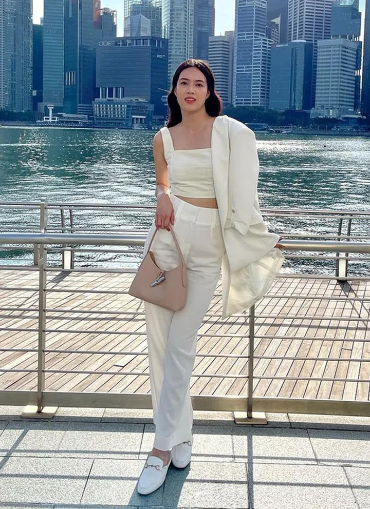 郑颖将白色短上衣、西装外套、长裤,以及乐福鞋一起穿搭,展现Z时代女性的率性姿态。#上班可以这么穿