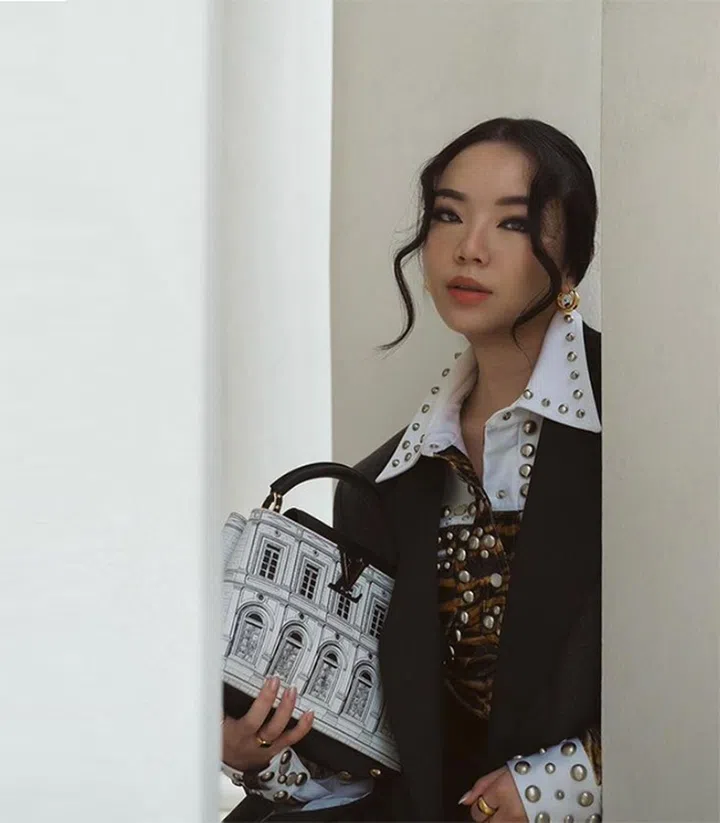 本地时尚博主Willabelle身穿宽廓形西装外套,手持系列中的Capucines BB手提包。