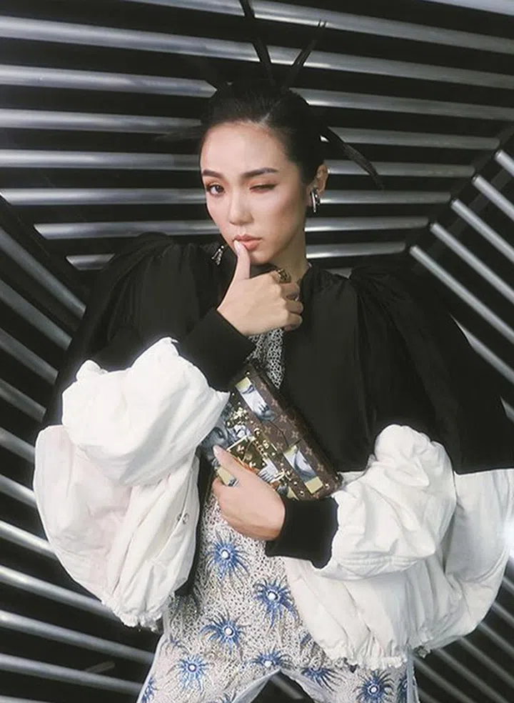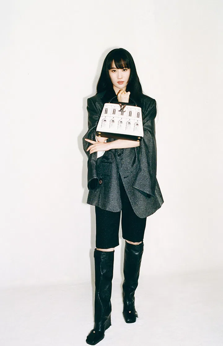 中国演员金晨也手持同款Petite Malle斜挎包,不同的是她选择搭配宽版的针织背心(很多潮人都在穿针织背心),展现不一般的休闲气味。
