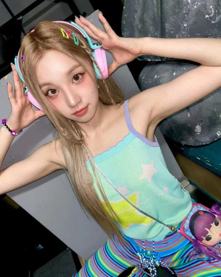首饰也是打造“多巴胺穿搭”的一个关键哦!可以参考韩国女团(G)-idle成员宋雨琦的搭配 —— 发间别有多彩小发夹,搭配亮色耳机,俏皮可爱的气息尽显现。