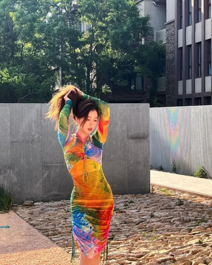 不确定怎么style“多巴胺造型”?那么省去搭配烦恼的one piece是很好的选择哦!只要一条色彩鲜艳的连衣裙,就能完成造型。虞书欣身穿澳洲品牌Alemais的网纱彩色连衣裙,是不是就很亮眼?