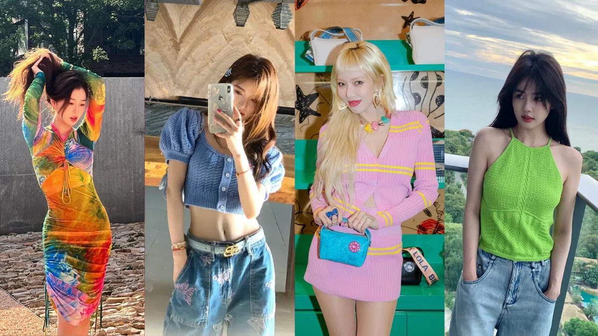 提及高饱和度色系的穿搭,怎么能少得了泫雅的穿搭呢?想要穿好“多巴胺造型",那就需要注意色彩的搭配(尽量保持在3个颜色之内噢!)。泫雅身穿的上衣&短裙以粉色为主+配有些许的黄色条纹,并以亮青色的包包作为亮点完成造型 —— 这样的色彩搭配,是不是看了心情就很愉悦呢?