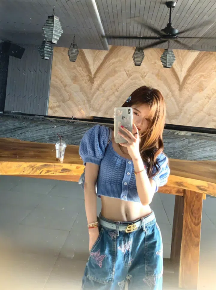 “多巴胺穿搭”怎么搭?请看“四千年美女”鞠婧祎示范:奶蓝色的SHUSHU/TONG短款针织衫、牛仔蓝的Ganni高腰裤、浅蓝色的Dior D-Joy手袋、天空蓝的Balenciaga腰带 —— 玩转不同深浅的蓝色,“多巴胺女孩”非她莫属!
