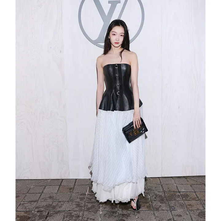 周冬雨以一袭品牌春夏的胸衣长裙亮相,并携带Petite Malle“小硬箱”手袋(Petite Malle手袋由Nicolas Ghesquière 设计,并亮相于其首场时装秀),梅子色妆容大获好评。