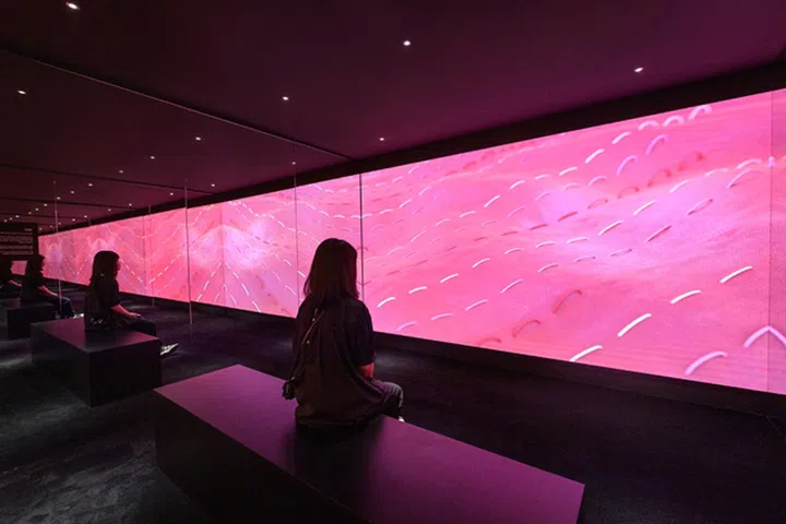 想了解Coach的制包过程吗?那就不要错过Coach World!房间内也设有长凳,让你能舒适地观赏影片。