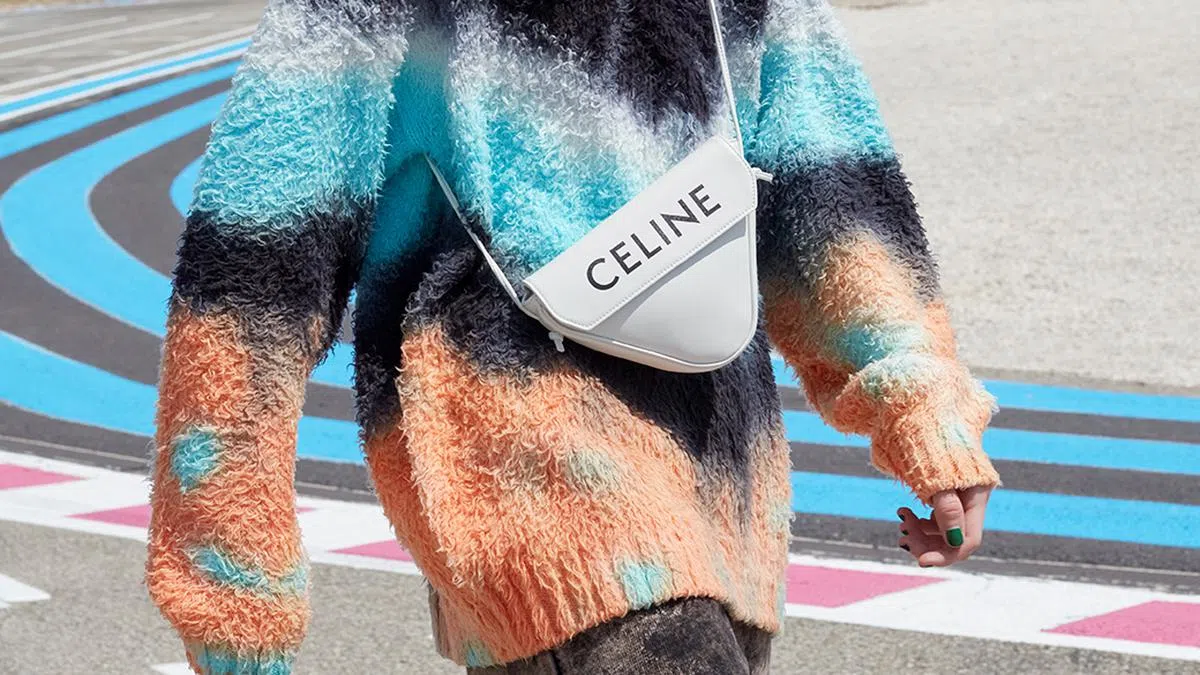 去年7月,法国品牌CELINE在南法Circuit Paul Richard举办2021年春夏男装秀以赛车道取代T台,名为"The Dancing Boy"的系列,灵感源自现代的E-boys及滑板文化。记得当时在线上看直播时,就被这款在翻盖印上“CELINE” logo的白色倒三角形肩袋“电”到。