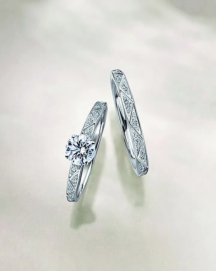 古罗马人相信左手无名指的血管与心脏相连,因此婚戒在传统上常被戴在左手无名指。钻石作为地球上最坚硬的天工造物,珍贵且闪耀独特光泽与火彩,让人联想到理想的爱情与婚姻。