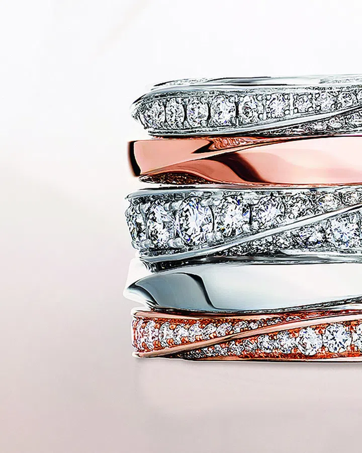 GRAFF以白金及玫瑰金漩涡形环圈打造的Spiral系列戒指(系列售价$3,500起)