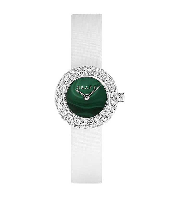 GRAFF Spiral搭载石英机芯、孔雀石表盘、23mm镶钻表壳、缎质表带腕表 $39,500
