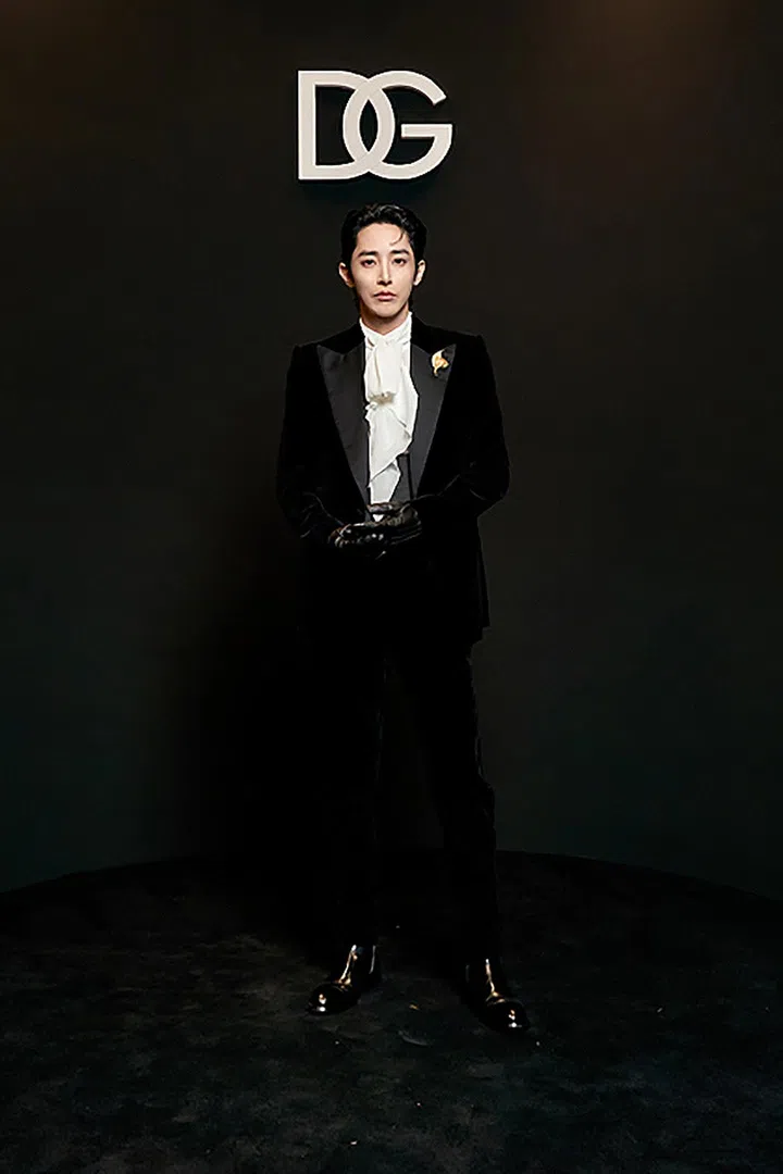 高冷美男李洙赫,以一身贵公子般的黑白西装造型出席Dolce & Gabbana 2024秋冬女装秀,展现出清冷又霸气的独特气质。