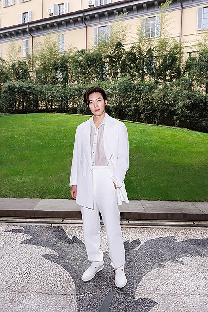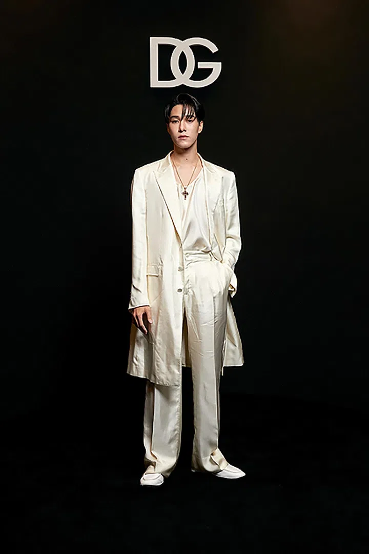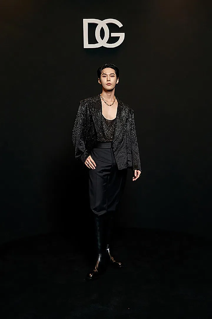 泰星Nani(泰版《流星花园》中的美作),以米白色的缎质套装出席时装秀,造型又帅又痞,在现场极其突出。