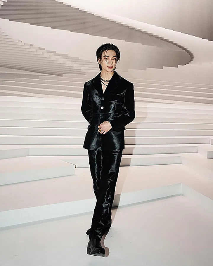 韩团Stray Kids成员黄铉辰和宁艺卓一同出席Versace 2024秋冬大秀,在现场还和Anne Hathaway头排同框。黄铉辰以一身富有光泽感的黑色西装亮相,超绝骨相演绎出精致独特的时尚风格。